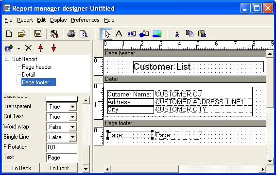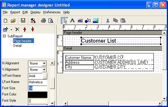 In this sample we will place a simple label to the report page header,set the height to 1 cm. and change the size of the font:
