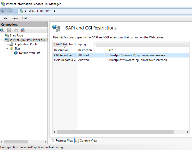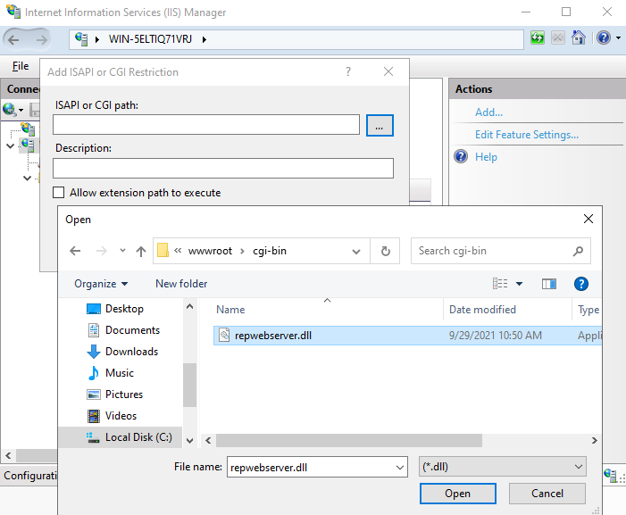 Installing Report Manager web server in Microsoft Internet Information services.